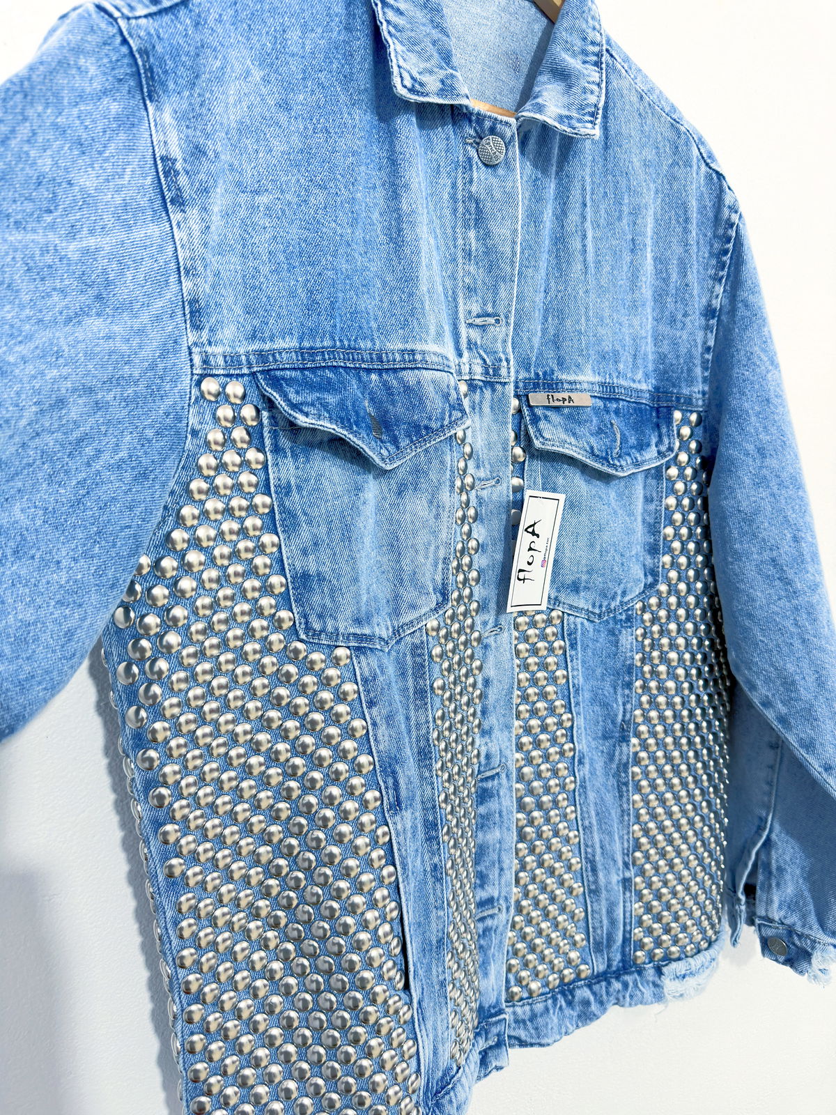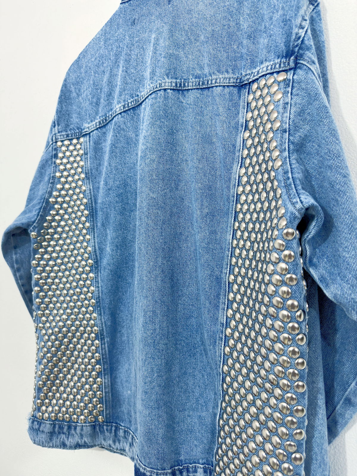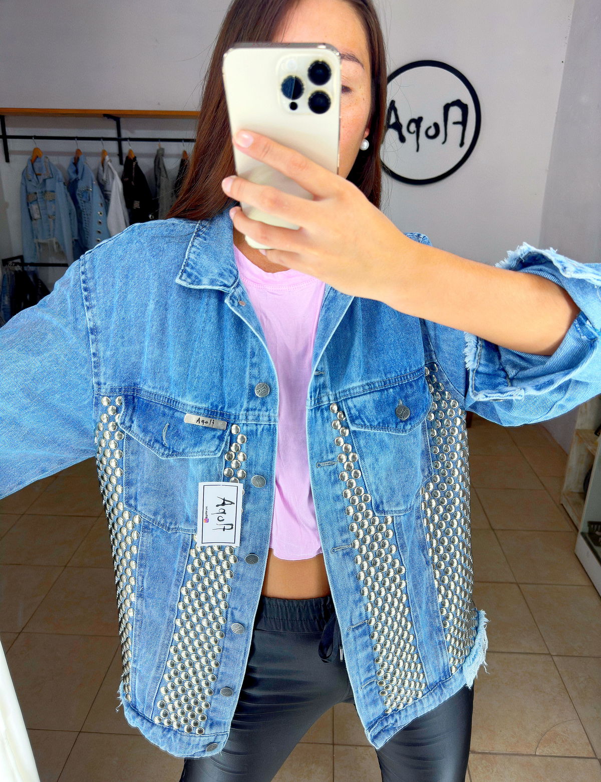 - Customizada con tachas colocadas a mano al frente y espalda de la campera