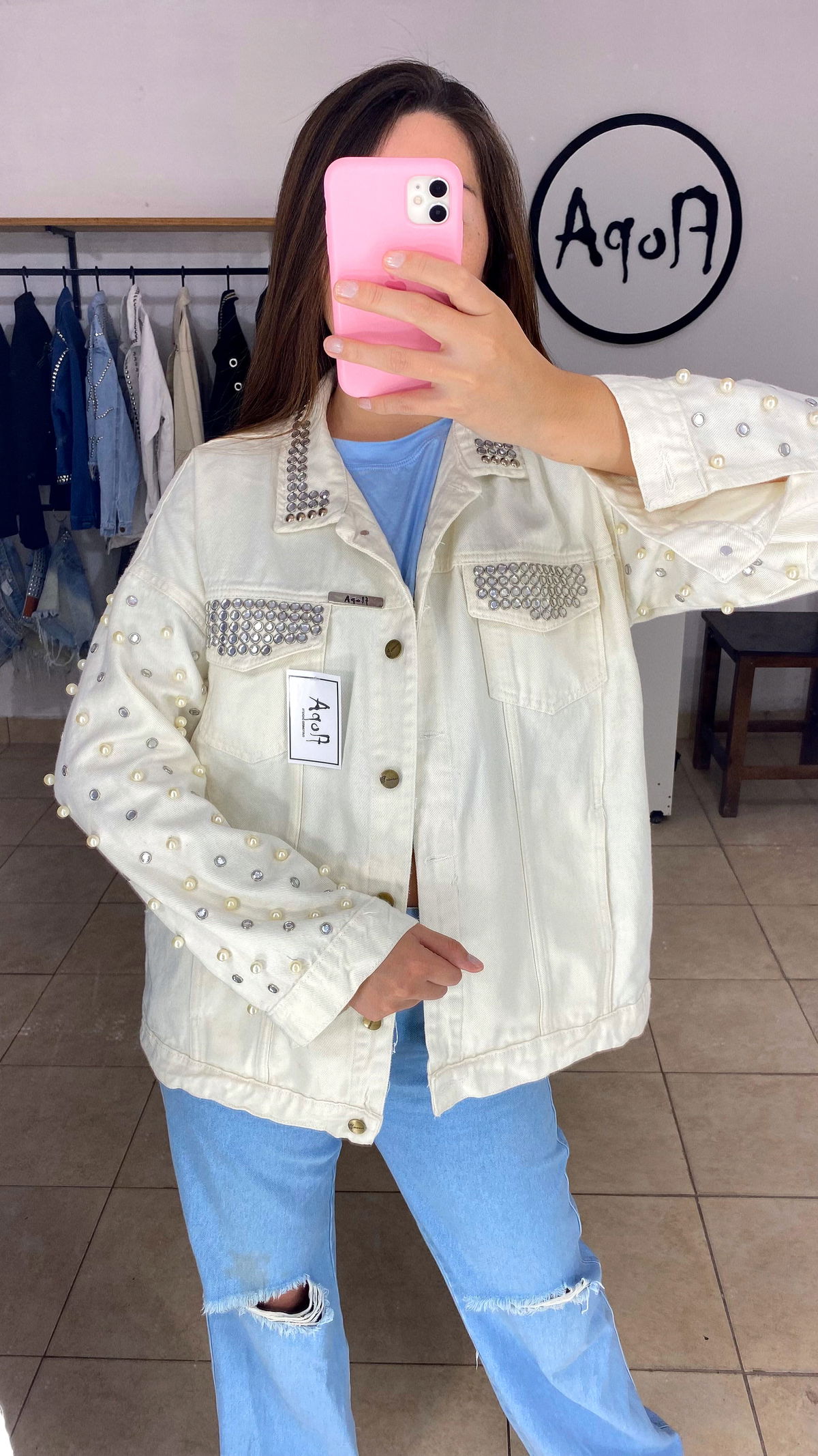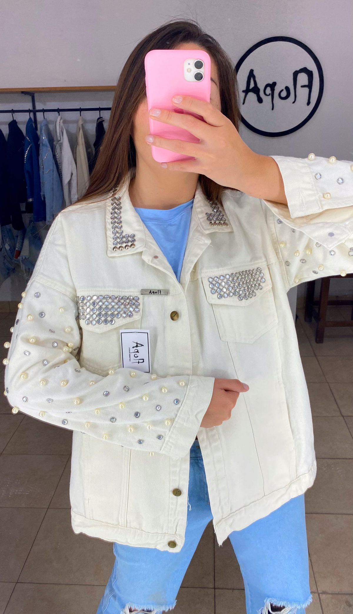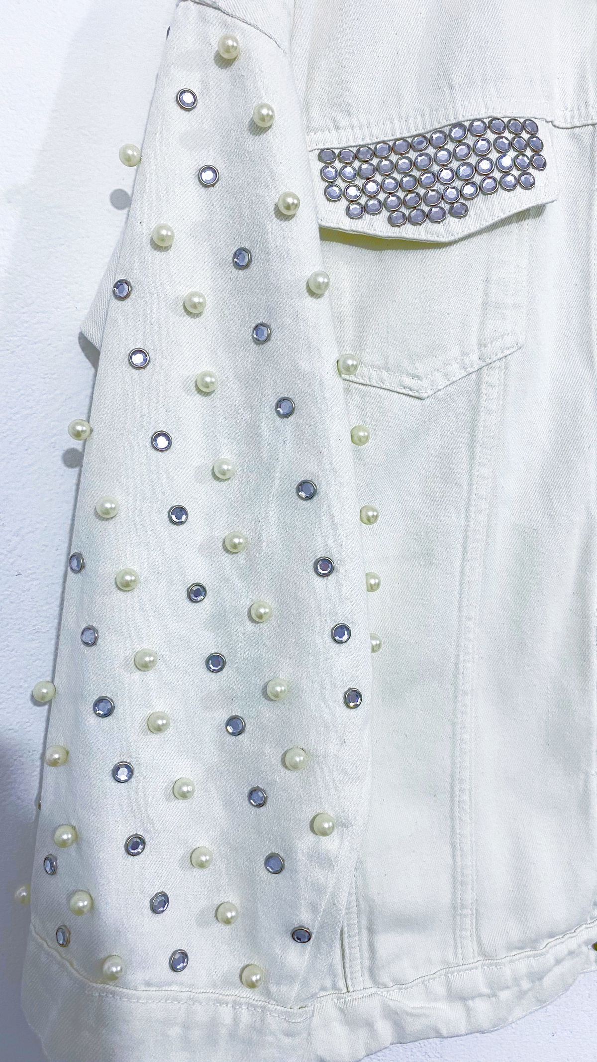 Campera de jean con strass y perlas