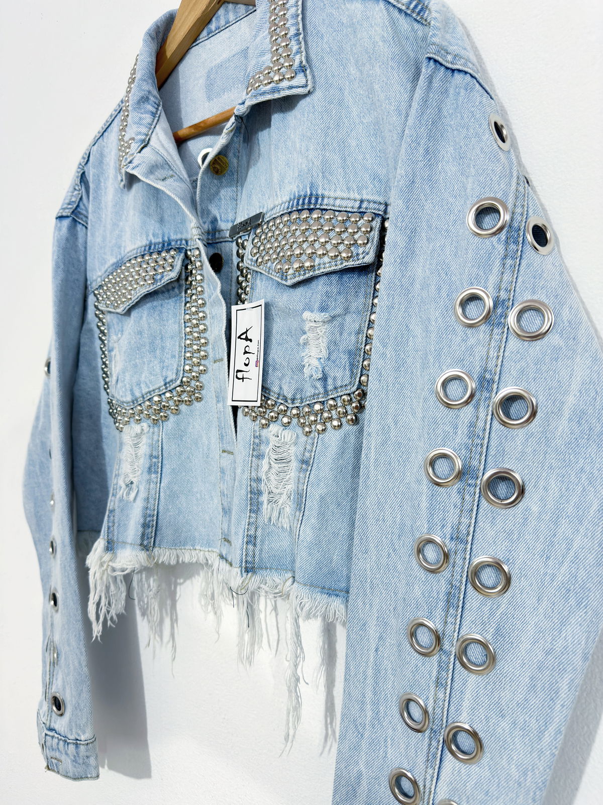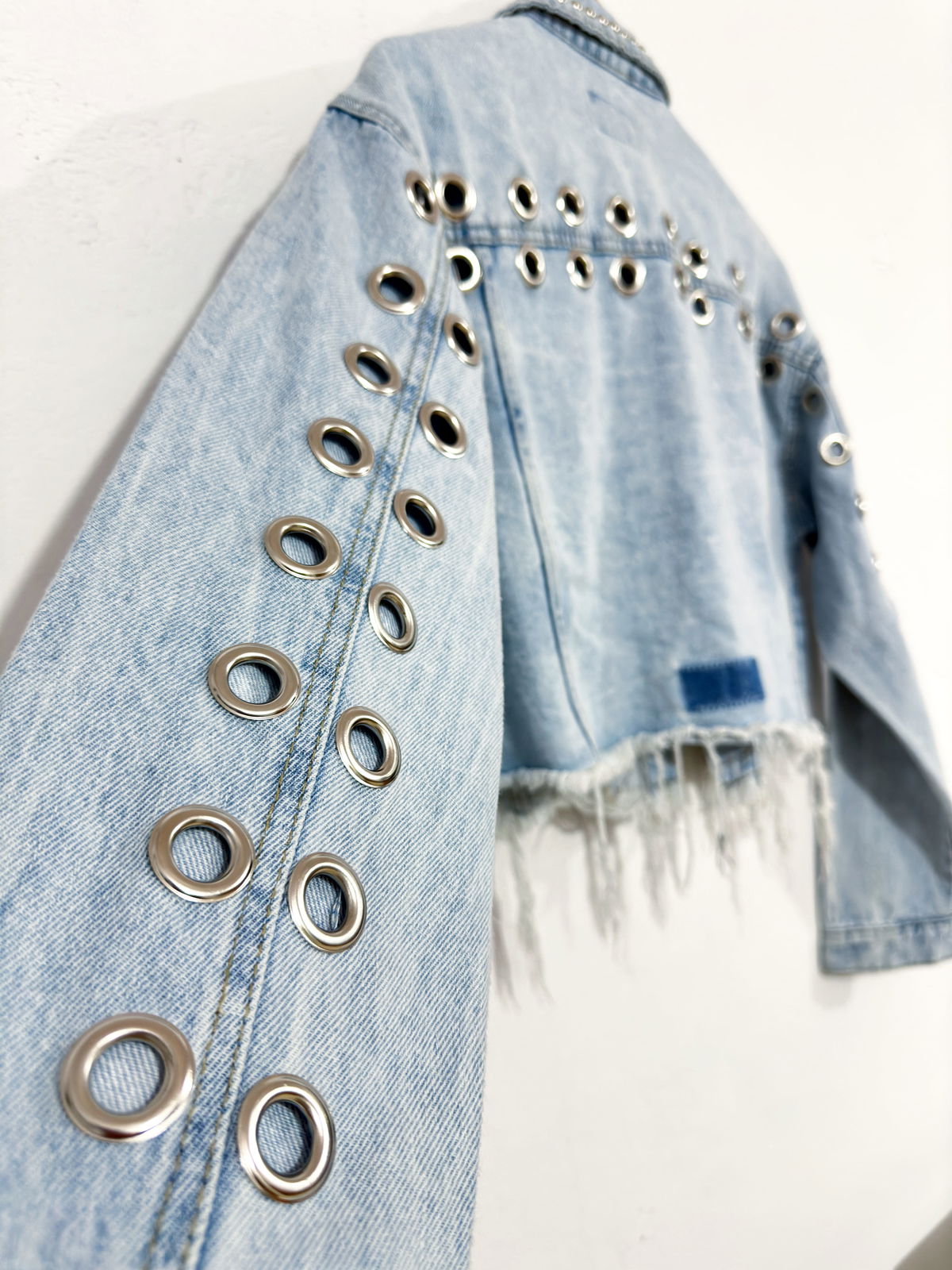 Campera de jean con tachas y ojales