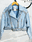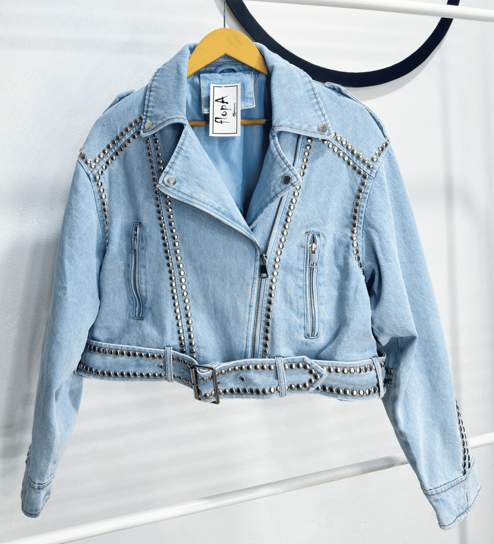 Diseño exclusivo confeccionado en jean rígido forrado, con corte oversize y cierre frontal.