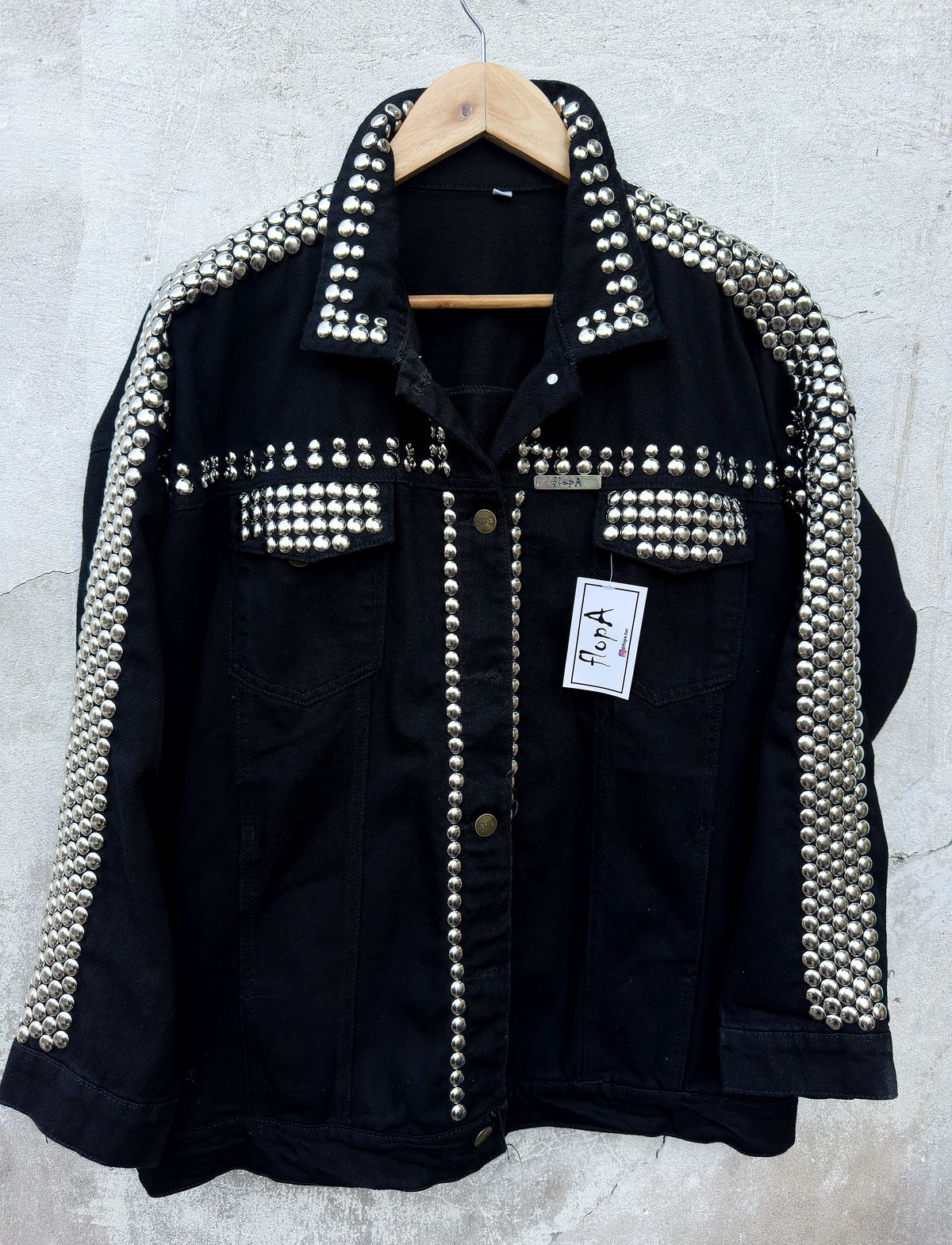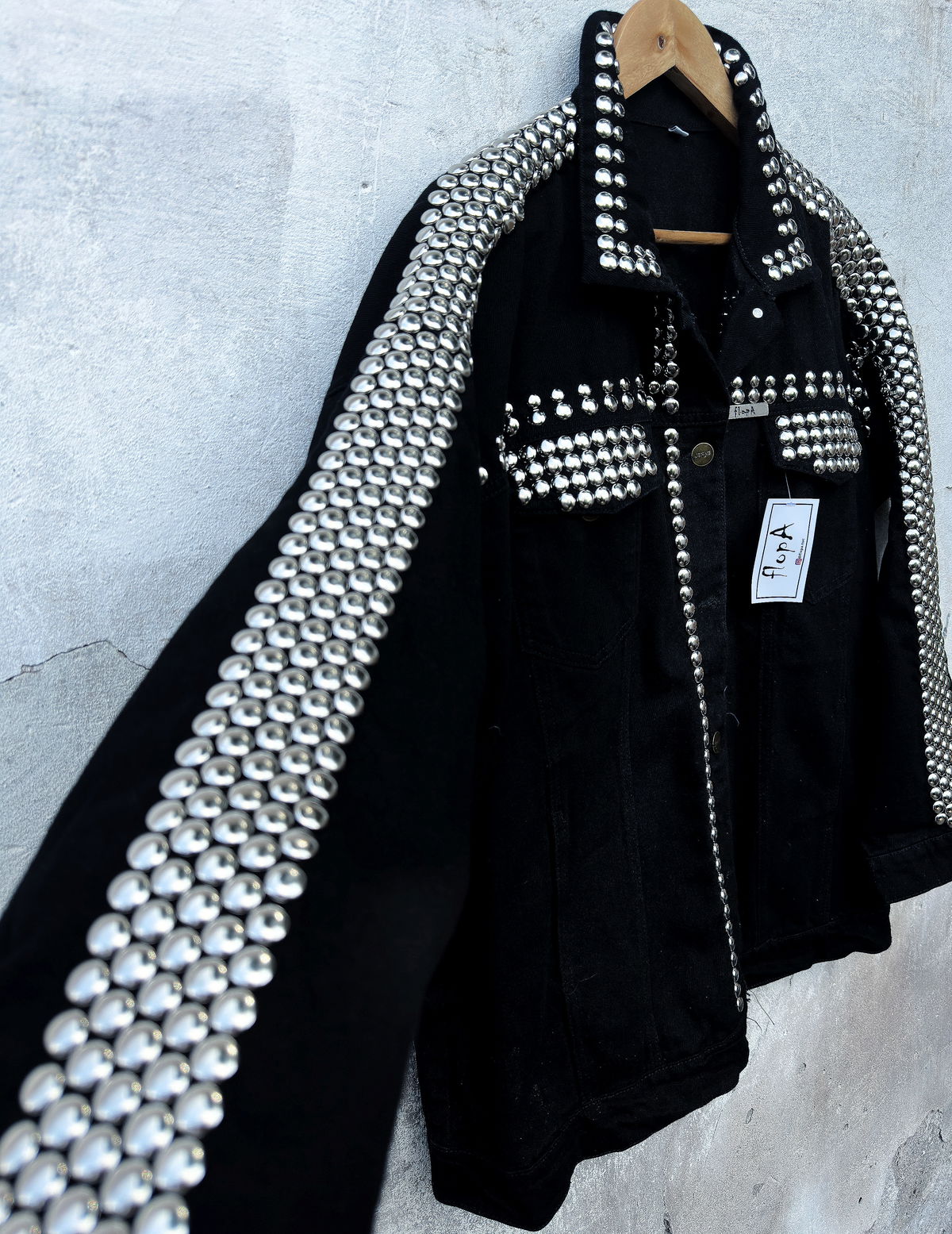 - Customizada con tachas plateadas colocadas a mano